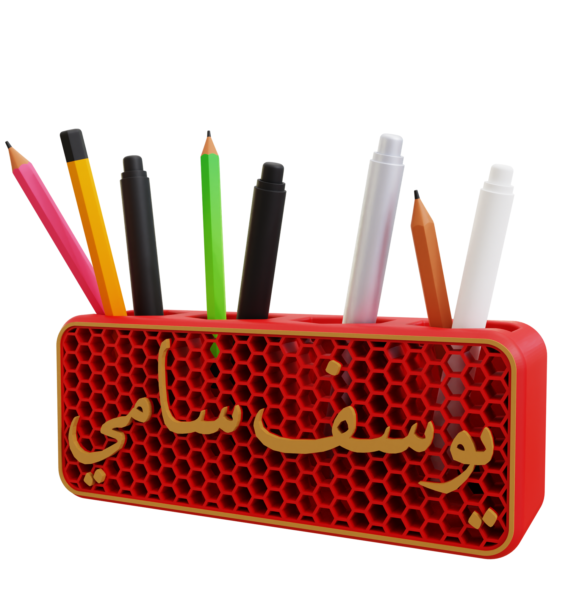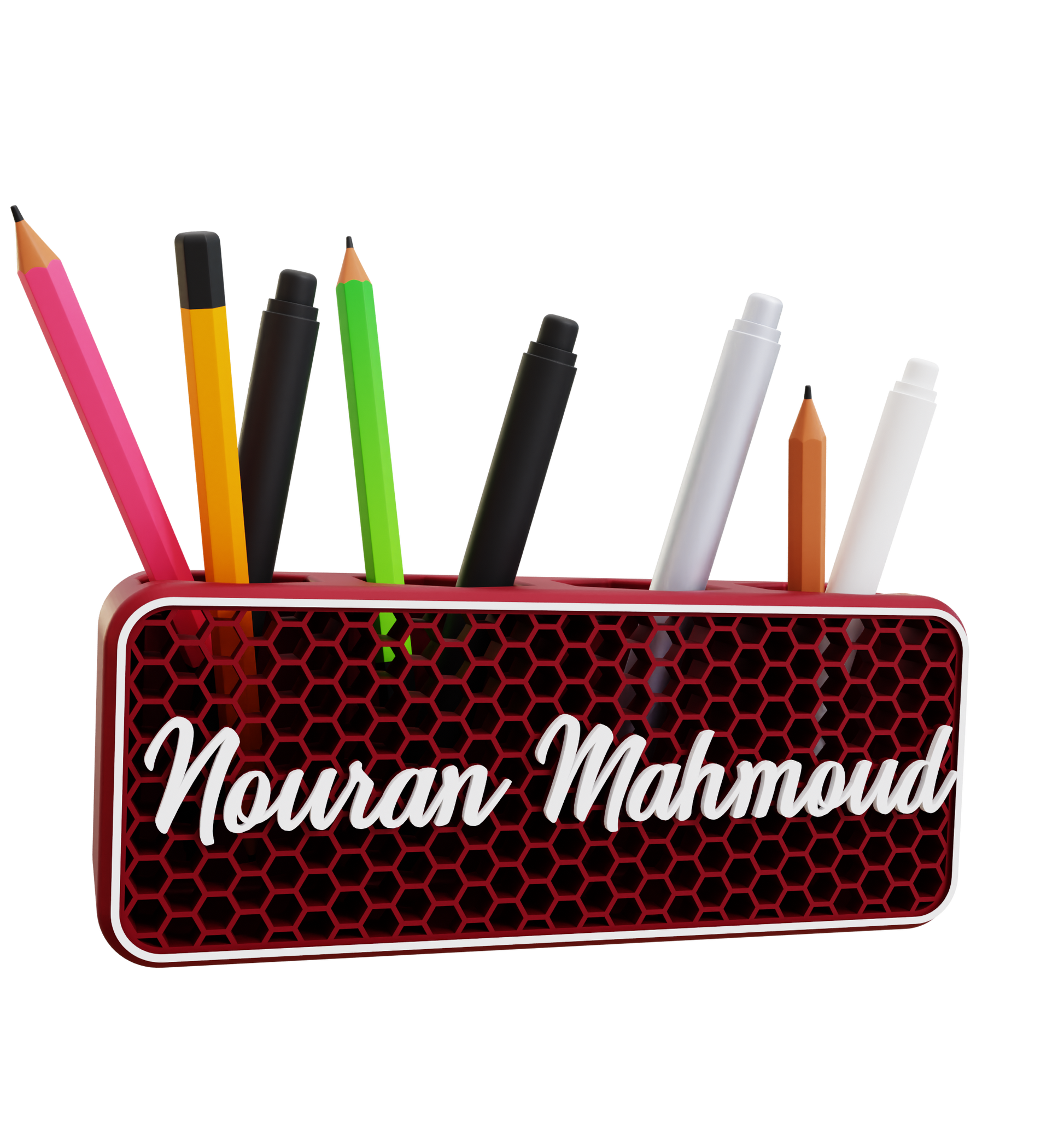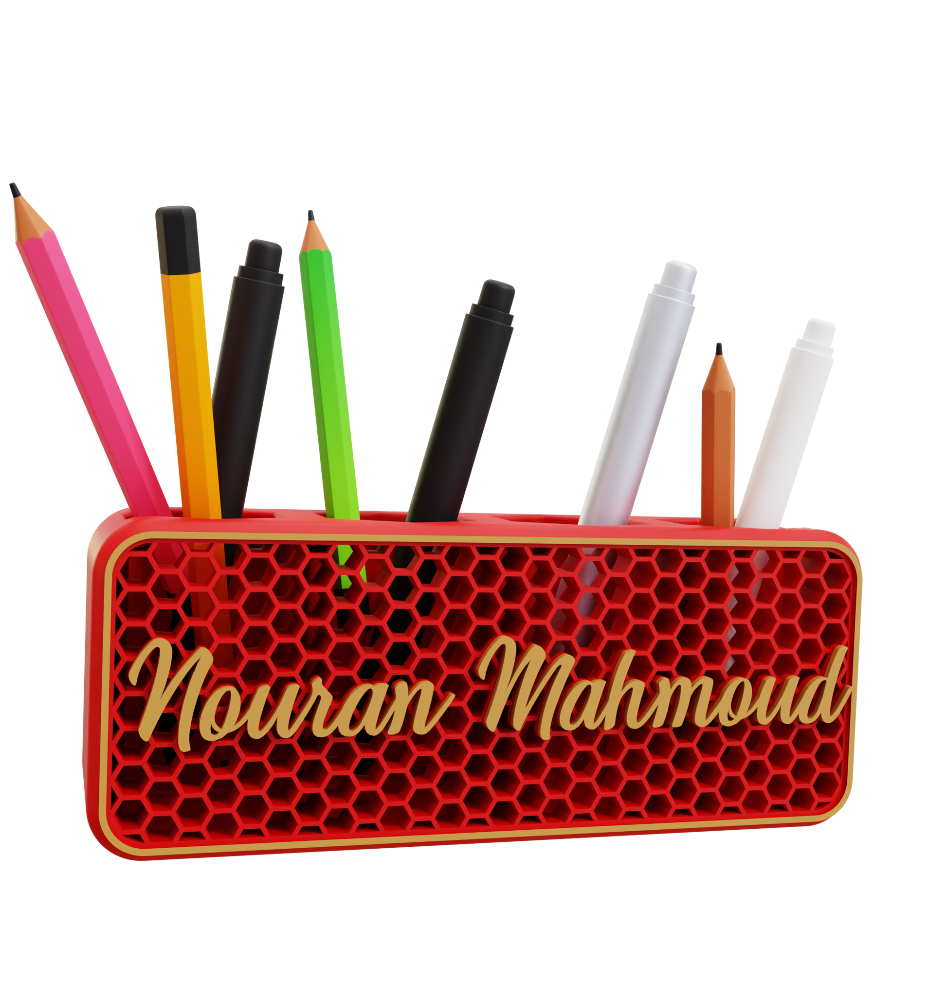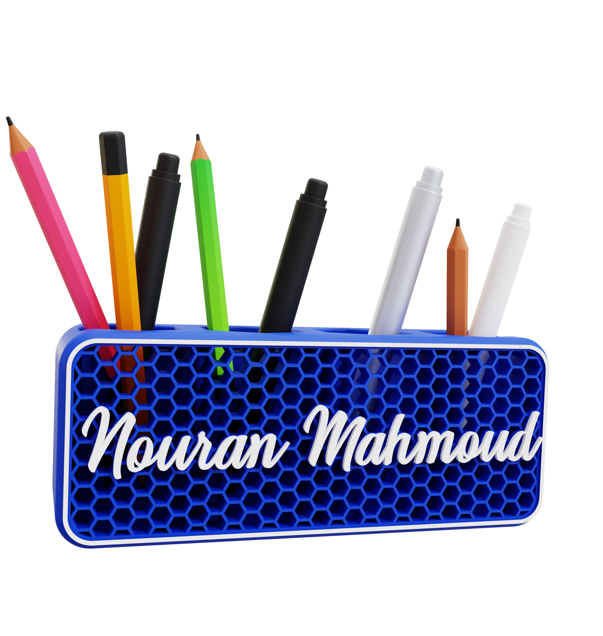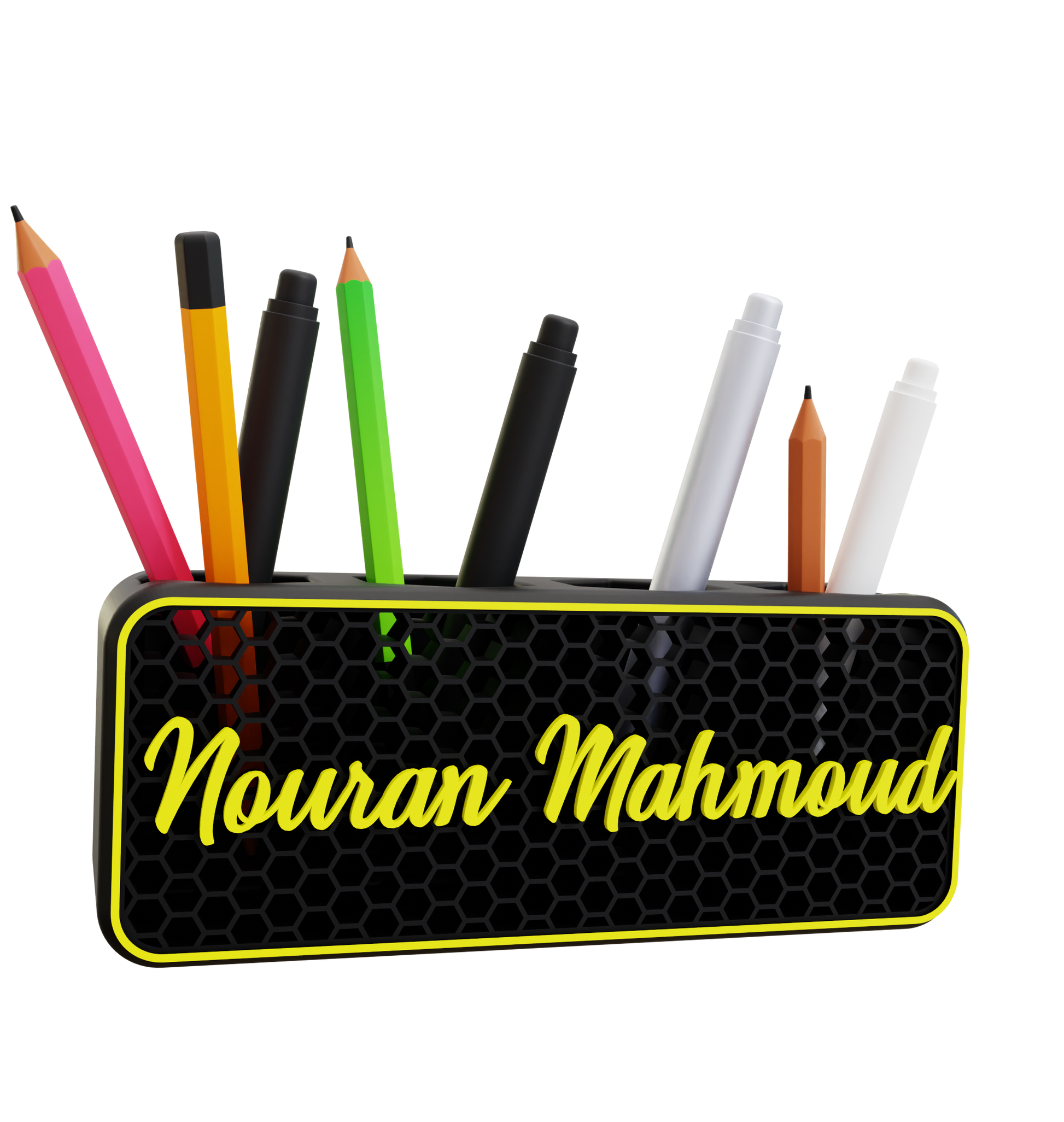 يحول حامل الأقلام بتصميم خلية النحل إكسسوار المكتب البسيط إلى قطعة تعبر عن هويتك. صُمم بهيكل سلكي خفيف الوزن مستوحى من دقة الطبيعة، ويوفر تخزيناً قوياً للأقلام أو الأقلام الملونة أو الفُرش أو الأدوات الصغيرة - بينما يتم عرض رسالة أو اسم شخصي بفخر فوق التصميم.