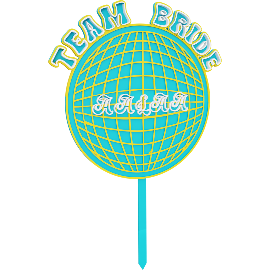 Get the Party Started and capture the essence of the party with our Disco Ball Bachelorette Cake Topper. Personalize it with your names and let the disco ball's shimmer and shine elevate your cake to new heights. This topper is a playful and glamorous addition to your bachelorette celebration, creating memories that will last far beyond the dance floor. Let the party begin!