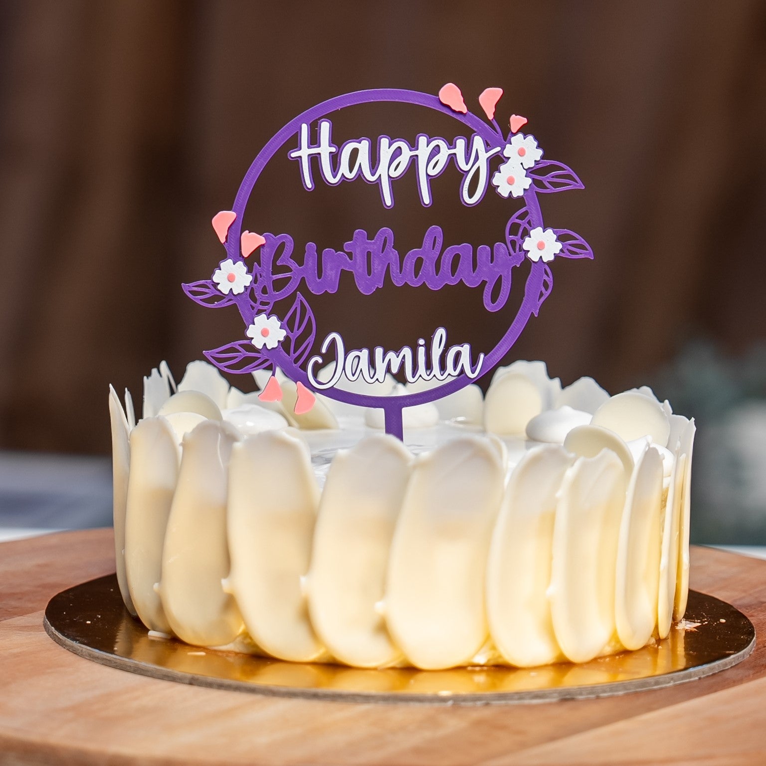 Our delicate flowery cake topper design will add an enchanted feel to your cake! Personalize your celebration by writing the names or words of your choice.