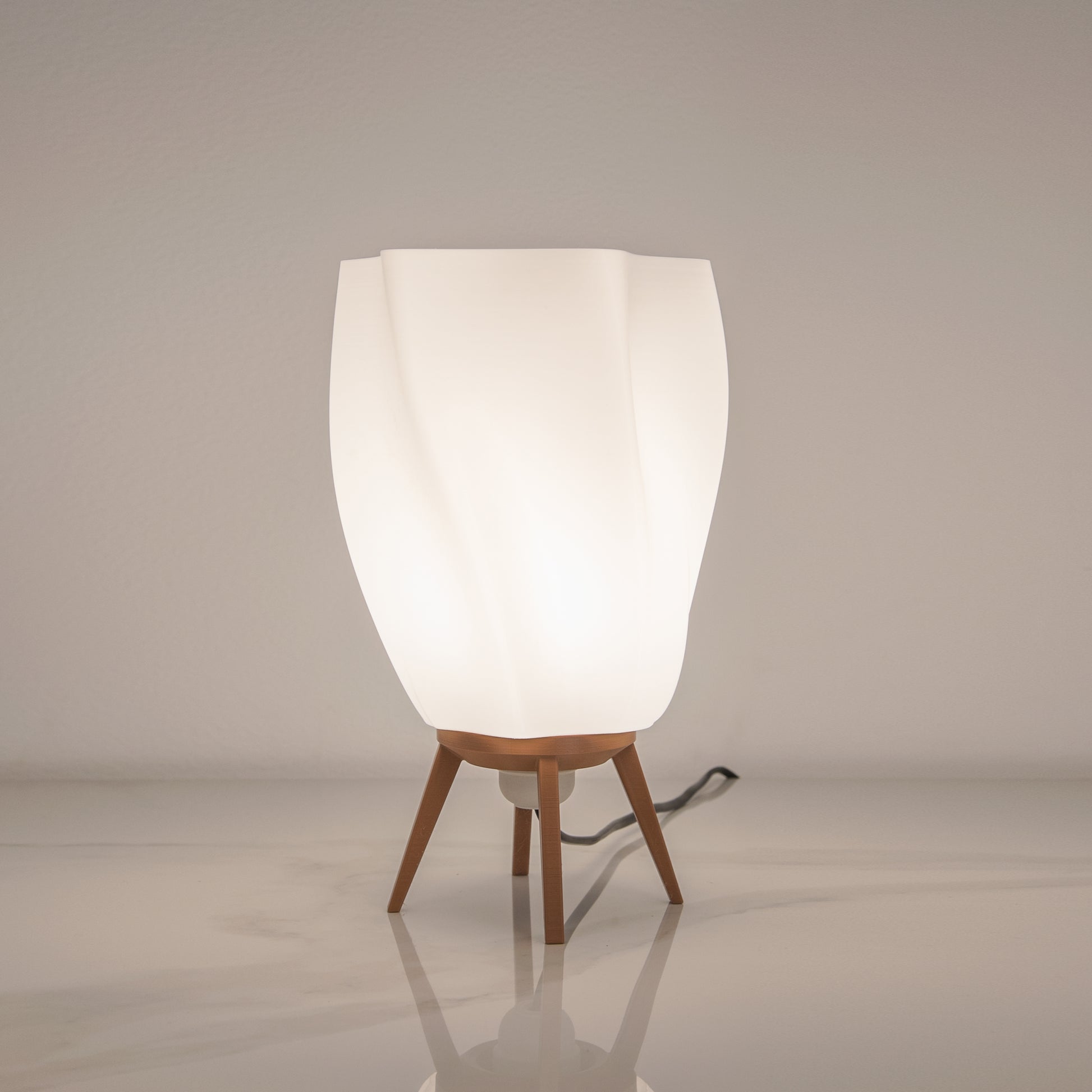 This unique lamp takes the form of a large, semi-open hibiscus flower.