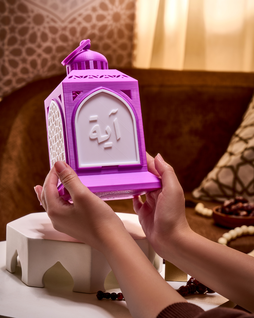 When illuminated, the soft LED light shines through your personalized word or name, creating a calm and intimate atmosphere ideal for iftar gatherings, prayer corners, or quiet evenings of reflection.