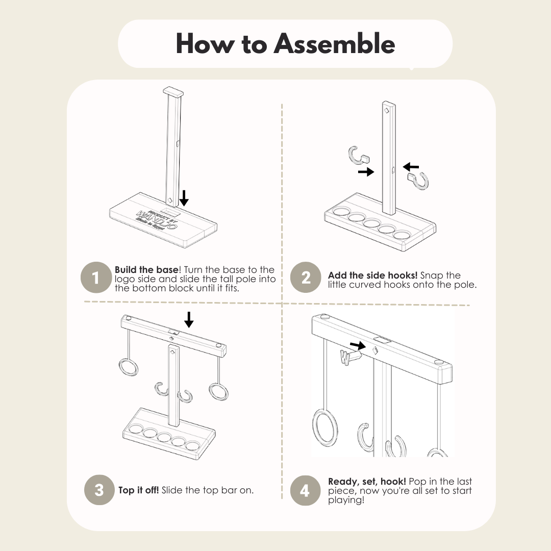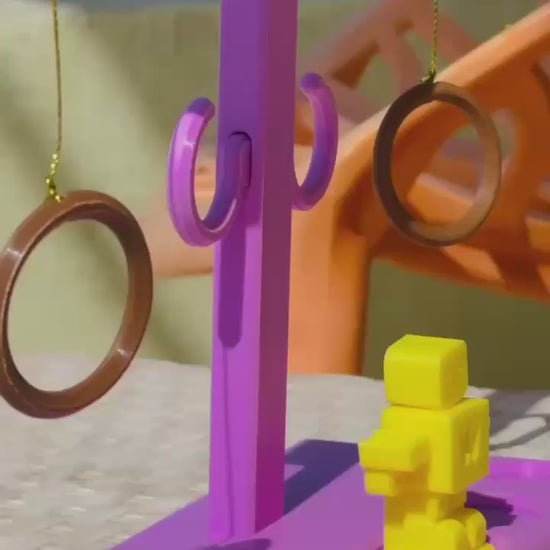 Win over your opponent by throwing the loop to be hanged by the hook, when you do so, you get to move WandDo Bot one step towards your opponent, when the bot reaches the final space and win again you win the game.